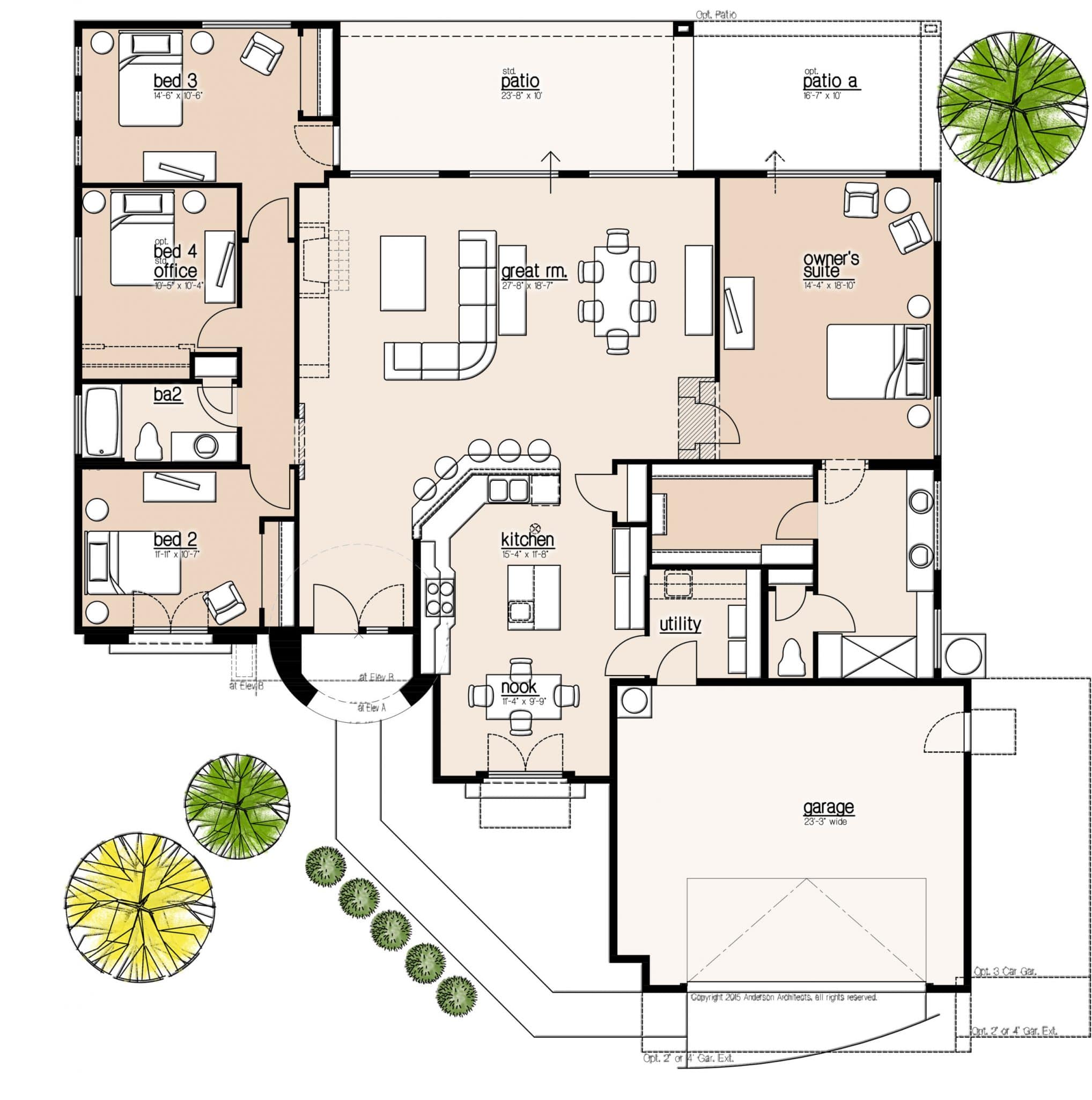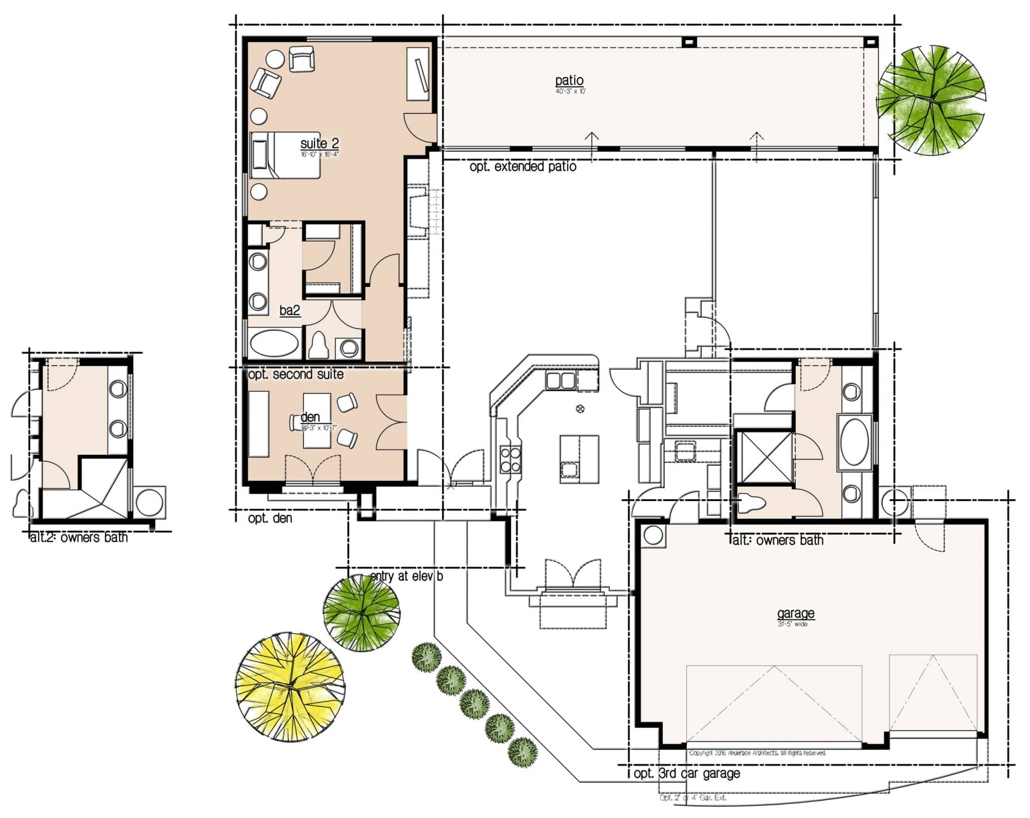 Single Story, 3+ Bedrooms, 2 Baths, 2 Car Garage, Great Room, Dining Room, Optional 3rd Car Garage, Optional Second Owner’s Suite 2,178 Square Feet