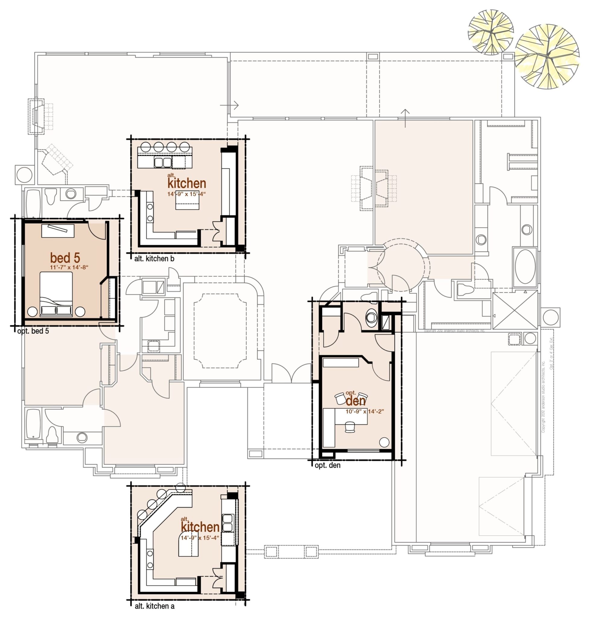 Single Story, 4+Bedroom 4 Baths, Side Load 3 Car Garage Living Room, Dining Room, Family Room Nook, Den, Optional 5th Bedroom Optional 2′ Garage Extension *Lot Premium Not Included